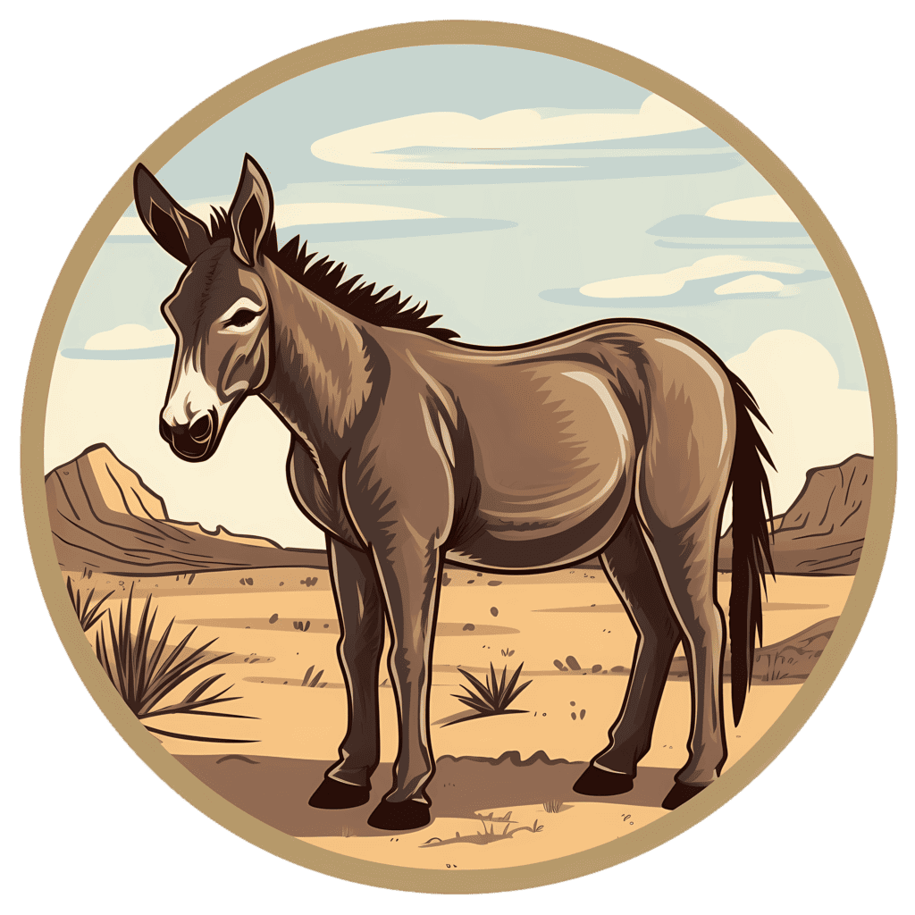 Donkeys originated in the arid regions of North Africa and the Horn of Africa, where their ancestors evolved to survive in hot, dry environments with limited water and food. Today, they inhabit a wide range of climates across Africa, Asia, the Middle East, Europe, and the Americas—especially in rural and agricultural areas where they serve as working animals. They are commonly found in mountainous terrain, deserts, and smallholder farms, valued for their ability to carry heavy loads, pull carts, and travel long distances over rough ground. While not classified into subspecies, several **breeds** have been developed based on size, strength, and regional adaptation. The **Large Standard**, **Medium Standard**, and **Miniature** donkeys (the latter originating from Sicily) are recognized in many countries. The **Poitou donkey**, from France, is notable for its shaggy coat and historical use in mule production. Donkeys are also bred specifically to cross with horses: a male donkey (jack) and a female horse produce a **mule**, while a female donkey (jenny) and a male horse produce a **hinny**—both hybrids prized for strength, endurance, and temperament. Feral populations exist in places like the American Southwest, Australia, and Mediterranean islands, where they sometimes impact native vegetation if unmanaged.