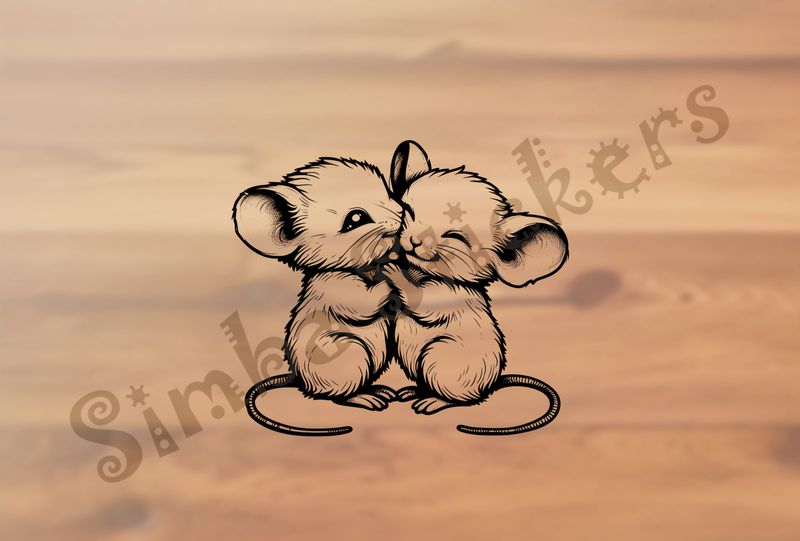 Baby mice cheek-to-cheek happily, outline art