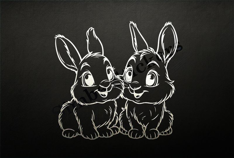 Bunnies in love, cheek-to-cheek, outline art