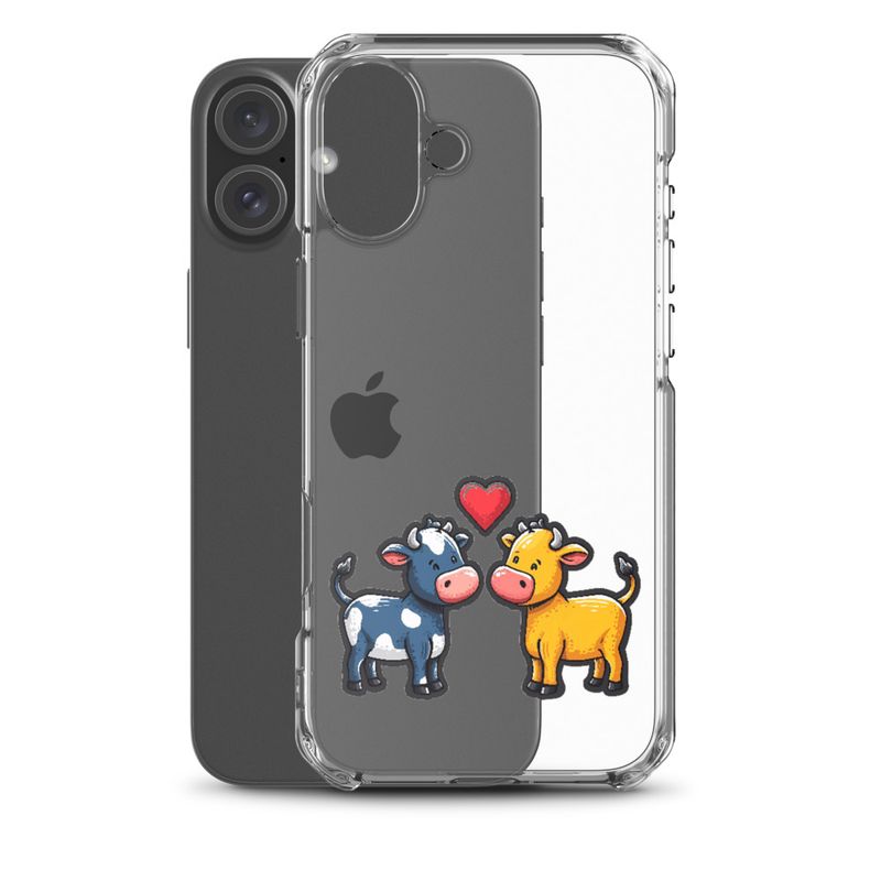 Clear Case for iPhone, Cattle, bull and cow in love, colourful , heart in picture, fvta2y
