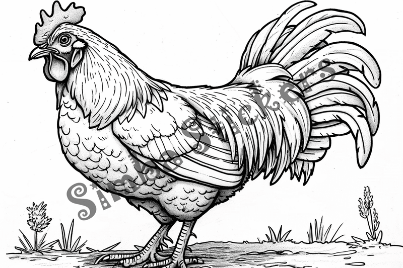Categories: Colouring Book Pages, Animal, Domestic Animal, Bird, Domestic Bird, Chicken,