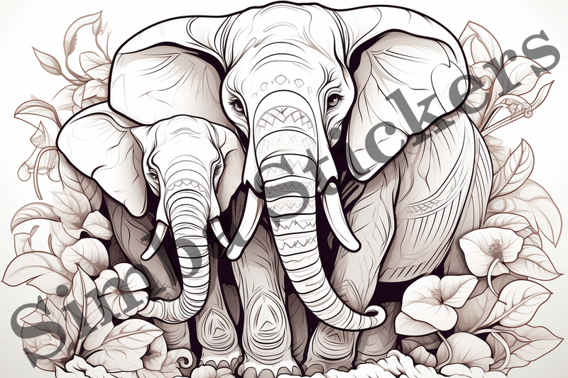 A bundle of colouring pages of elephants.