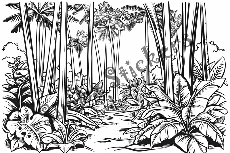 Categories: Colouring Book Pages, Nature, Nature Landscape, Africa, Equatorial Rainforest Landscape,