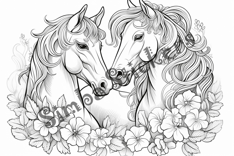 Categories: Colouring Book Pages, Animal, Domestic Animal, Domestic Farm Animal, Mammal, Horse, Romantic,