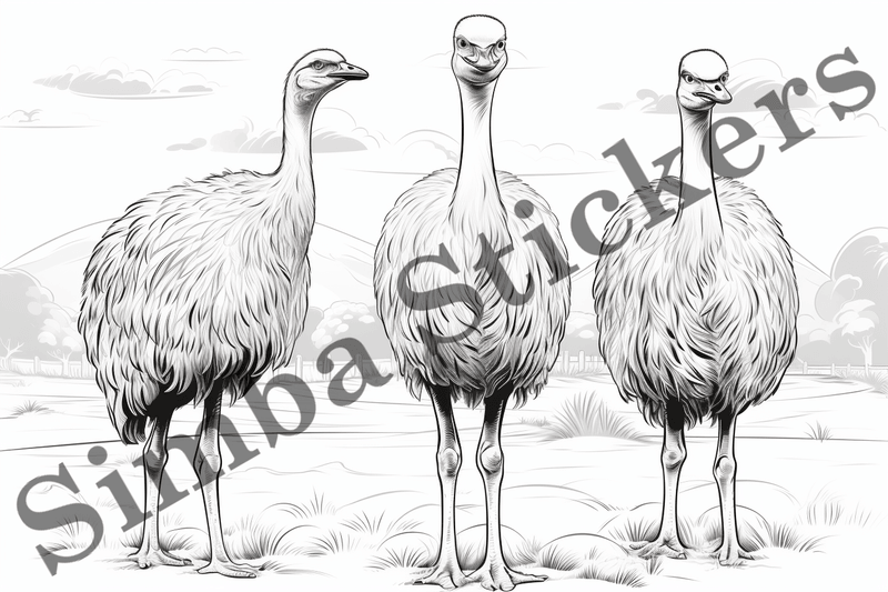 A bundle of colouring pages of ostriches.