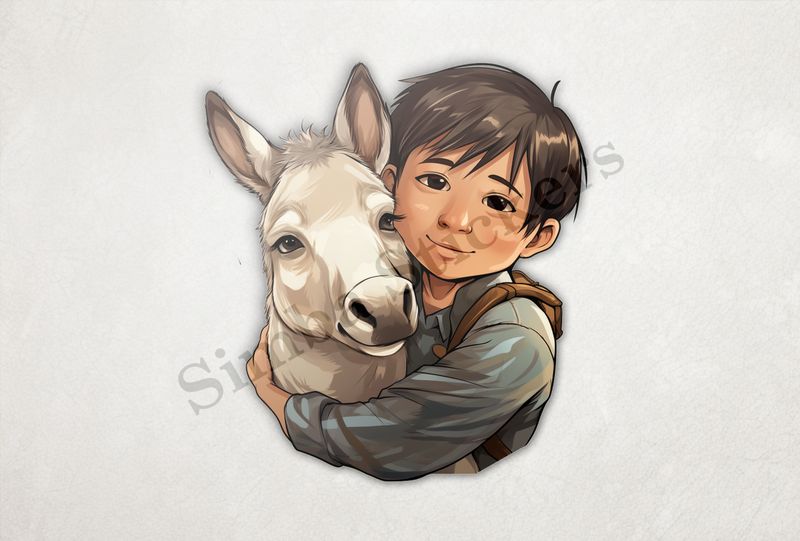 Categories: Individual Digital Sticker, Animal, Domestic Animal, Domestic Farm Animal, Mammal, Donkey, Child,