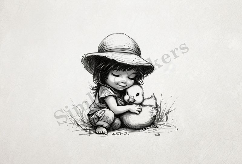 Categories: Individual Digital Sticker, Animal, Domestic Animal, Bird, Domestic Bird, Duck, Child, Outline Art,