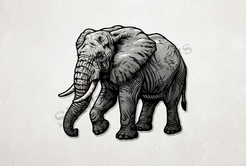 Categories: Wild Animal, Mammal, Africa, African Savanna, Elephant, Outline Art,