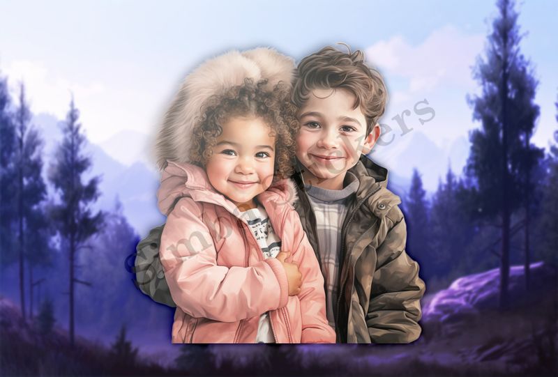 Girl in pink jacket held by boy