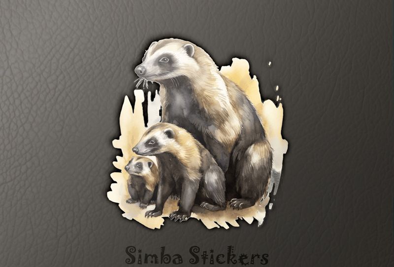 Categories: Individual Digital Sticker, Wild Animal, Mammal, Honey Badger, Watercolour,