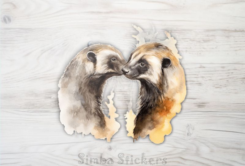 Categories: Individual Digital Sticker, Wild Animal, Mammal, Honey Badger, Romantic, Watercolour,