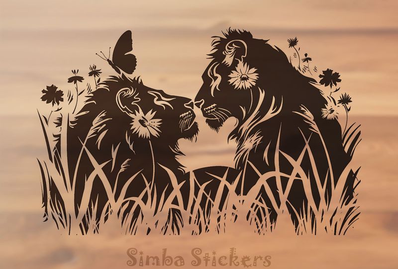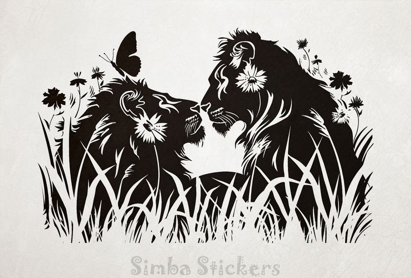 Categories: Individual Digital Sticker, Animal, Wild Animal, Mammal, Africa, African Savanna, Buffalo, Big Cat, Lion, Romantic, Outline Art,