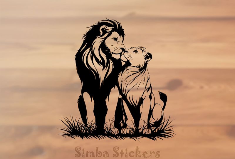 Categories: Individual Digital Sticker, Animal, Wild Animal, Mammal, Africa, African Savanna, Buffalo, Big Cat, Lion, Romantic, Outline Art,