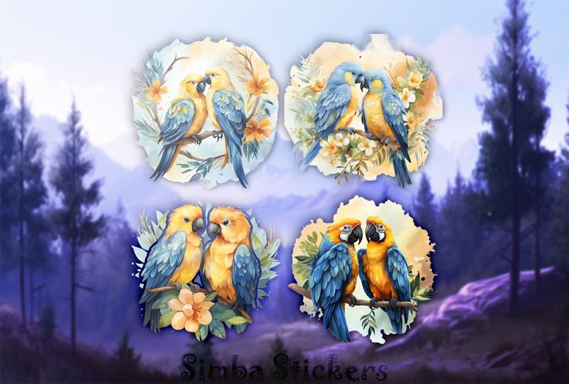 Categories: Individual Digital Sticker, Animal, Wild Animal, Bird, Parrot, Watercolour, Romantic, 4-in-1 image,