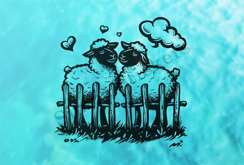 Categories: Individual Digital Sticker, AnimalDomestic AnimalDomestic Farm AnimalMammal, SheepOutline ArtRomantic